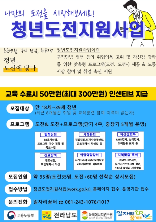 ▶ 문의전화 : 061-243-1076 / 1017 (일자리 꿈터)